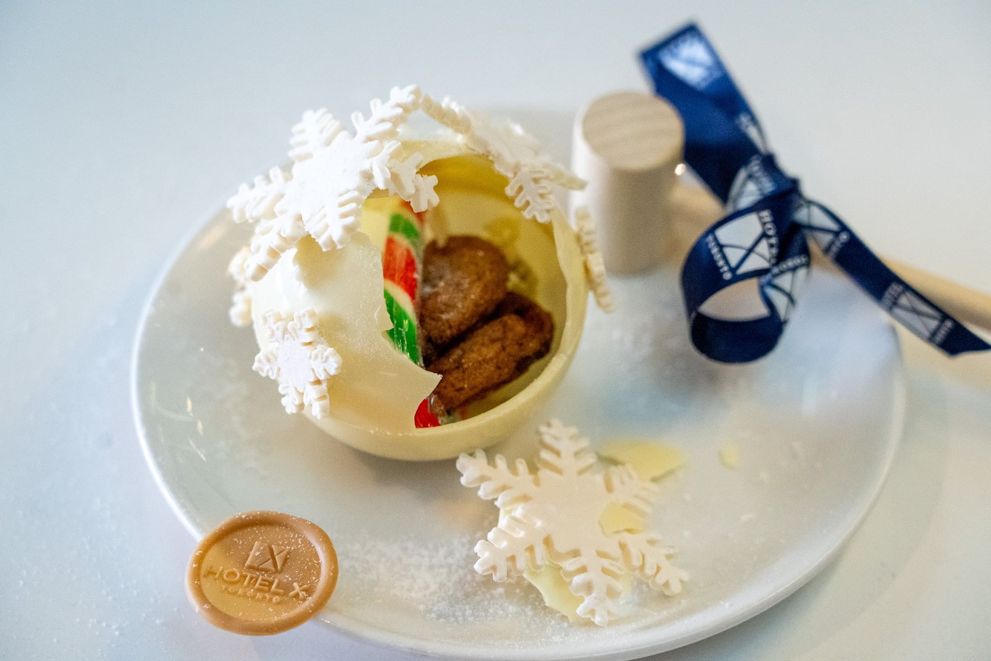 Holiday in-room amenity – Snowflake ornament, filled with candy canes and chocolate chip cookies.